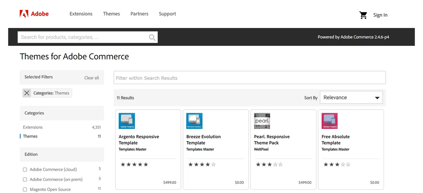 źródło: https://commercemarketplace.adobe.com/themes.html
