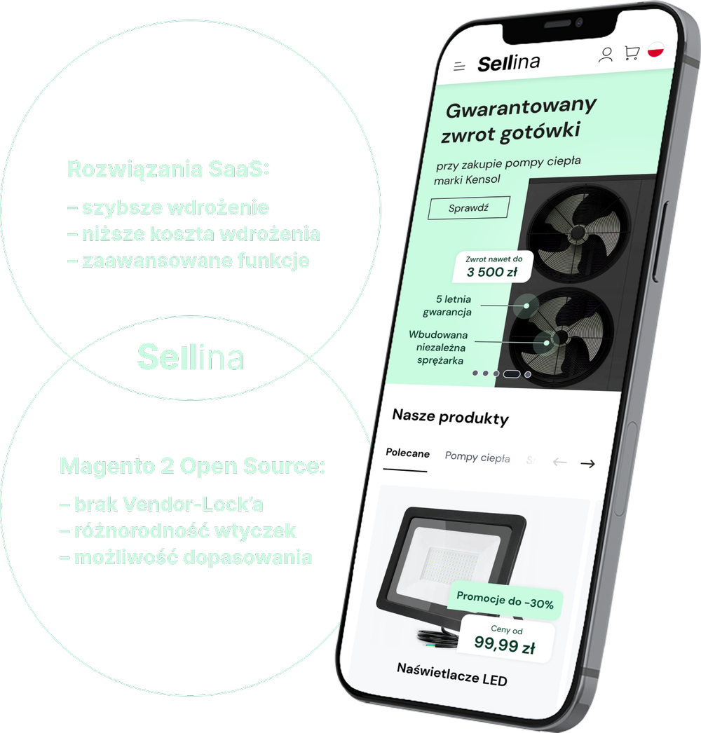Sellina to kompletny system eCommerce B2B/B2C, umożliwiający nieograniczone dostosowanie do biznesu, uruchomienie w kilka tygodni i niższy koszt w porównaniu do alternatywnych rozwiązań.